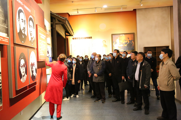 来到湖南党史陈列馆,一行人向馆内“潇湘魂”开国元勋雕像敬献花篮,低头静默肃立,并行三鞠躬礼。随后在讲解员的带领下,有序参观了展厅。面对弥足珍贵的照片、实物与文字,大家的思绪瞬间被带入到硝烟四起和激情迸发的岁月,重温了湖南人民在中国共产党领导下进行革命与奋斗的光辉历程,不断感悟着革命先辈们敢教日月换新天的豪情壮志。