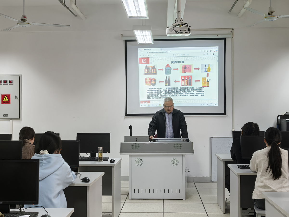 报告会上,陈伟首先介绍了恒顺酒业的发展历程、黄酒品类、工艺特色与生产规模,随后围绕黄酒历史文化、品牌故事、国家标准、传统与现代酿造工艺、感官品鉴、风味化学及营养功能等方面展开讲解,带领师生领略黄酒产业链的生机与活力。陈伟的报告内容详实、案例丰富,使同学们对现代科学如何解析传统酿造工艺有了更直观的认识,进一步增强了专业认同与文化自信,对职业方向也有了更清晰的思考。