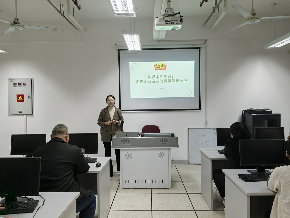 随后,孟宁从质量管理的角度,深入阐释了企业文化中“质量”与“安全”的核心价值。她以“西红柿炒鸡蛋”作类比,通俗易懂地讲解了企业质量管理体系中的PDCA循环(计划-执行-检查-行动),强调从社会需求到产品落地的全过程质量控制和持续改进,帮助同学们理解质量溯源的重要性,体会“食品质量重于泰山”的责任意识。孟宁的讲座风趣幽默、深入浅出,激发了同学们对质量管理和标准化操作的浓厚兴趣。