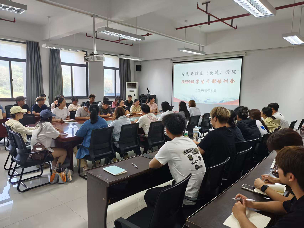 为加强学生干部队伍建设,提升学生干部的综合素质与履职能力,充分发挥其在班级建设中的桥梁作用,电气与信息(交通)学院于10月11日在学院423会议室开展了2025级学生干部培训会。全体新生班级的班长与团支书参加了本次培训会。 会议伊始,学院党总支副书记李蓓对学工与教学的相关老师进行介绍,同时肯定了入学以来新生班干部的工作成果,提出了对他们未来工作的期许。副院长居玮讲解了教学条口的相关工作内容,