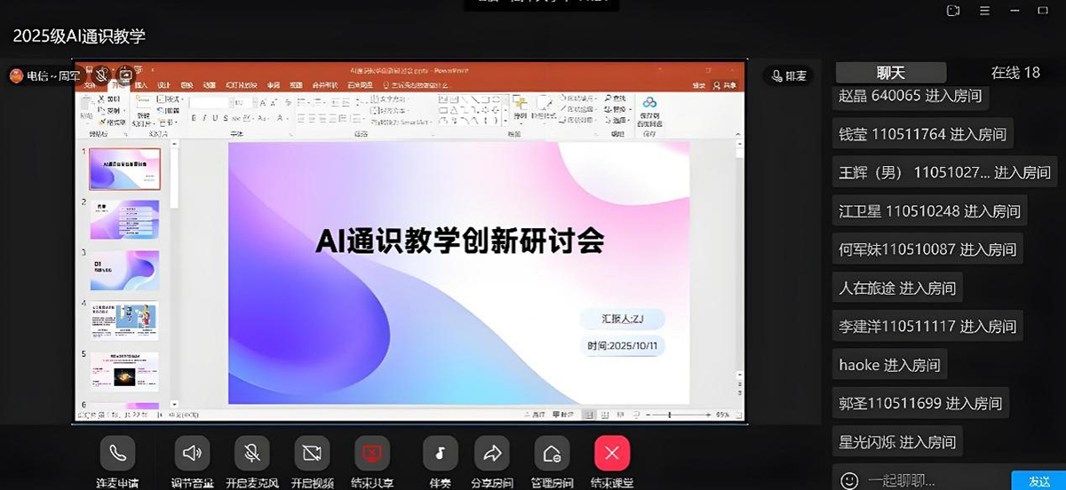 10月11日,电气与信息(交通)学院信息技术教研室依托腾讯QQ平台,组织全体任课教师召开新学期人工智能通识课教学创新专题研讨会。会议紧扣学校AI教学创新发展部署,为即将面向2025级新生开设的《人工智能概论》通识课程明确教学方向、夯实实施基础。 据悉,为贯彻落实学校新学期中层会议中关于AI教学创新的讲话精神,学院在会前便启动专项筹备工作:一方面组织骨干教师团队编写适配学校学情的校本教材,聚焦