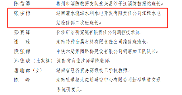 公司江垭水电站张桉榕同志荣获“湘直工匠”称号