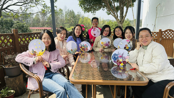 团扇制作完毕后,指导老师还向大家传授了一系列持团扇拍摄的仪态动作,女职工们在收获了美丽的团扇作品后,也跟随老师认真学习拍摄技巧,手持团扇拍照留念。