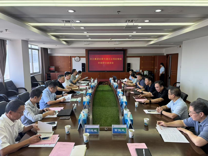 8 月 1 日,汉江集团纪委书记陈建波一行到公司调研座谈。公司党组书记、董事长徐磊主持座谈会,双方围绕工程建设和新能源项目建设领域监督工作进行深入交流。公司党组成员、纪检组组长郭炳奎参加座谈。