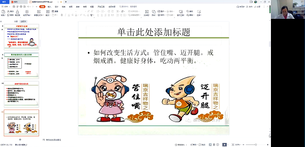 3月8日,一场线上健康知识讲座拉开了序幕。公司特邀长江委长江医院白俊芬主任以《健康好身体,吃动两平衡》为题,从饮食、运动等方面向大家传授健康知识,叮嘱大家要调整饮食结构,合理安排体育锻炼,这样才能拥有一个健康的身体,更好工作,幸福生活。