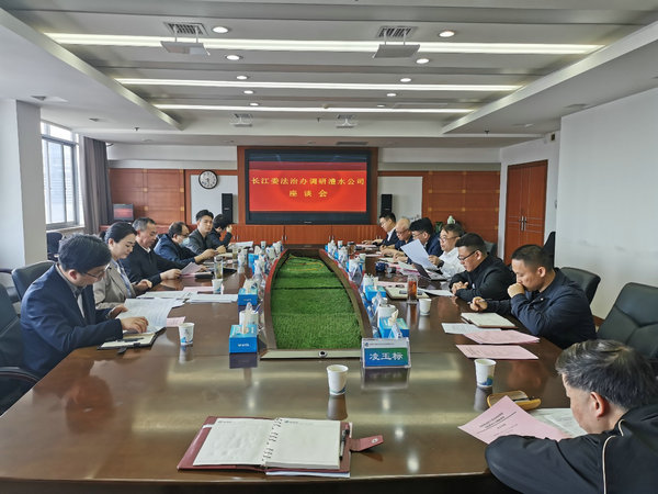 长江委政法局二级巡视员邹汝良,以及双方有关部门、单位负责人和法律顾问参加座谈。